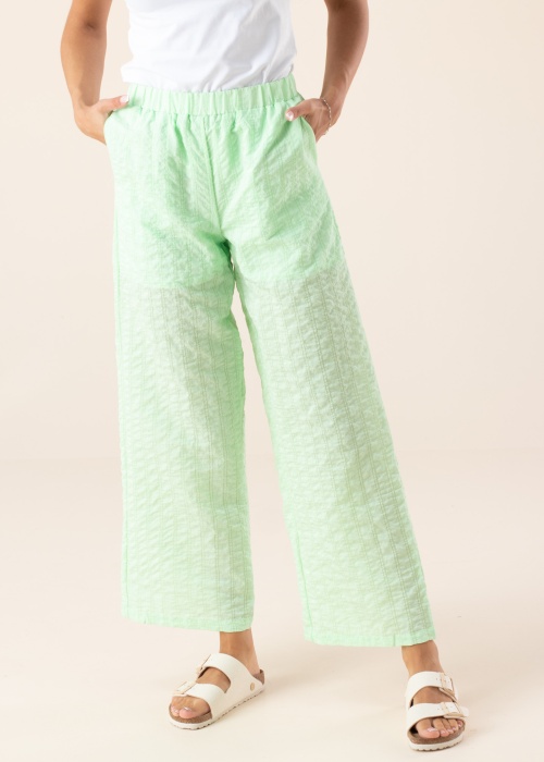 Лёгкий брюки Somethingnew подходят для стильной женщины. Летний и высокая талия брюки- тонкий и широкие штанины. на поясе- резинка и практичности добавляют открытый карман. Войди в новый сезон модно. Рост модели - 178 см и носит размер S.