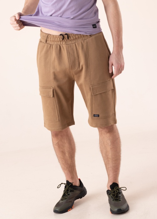 Своеобразная штаны до колена Blend подходят для проведения досуга. Практичная и удобная штаны до колена- из ткани для спортивных костюмов и эластичная талия. Спереди и сзади открытый карман, на штанинах карман с липучкой и на поясе тоннельный шнурок. Рост модели - 188 см и носит размер L.