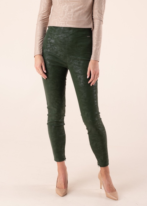 Эффектные, красивые брюки с выбеленной поверхностью Guess Priscilla - прекрасный повседневный выбор. Высокий, эластичный пояс комфортно облегает тело. На передней части изделия расположена минималистическая, серебристая деталь с названием бренда. На внешней поверхности штанин расположены молнии. Невероятно мягкая изнанка. Рост модели 177 см. Демонстрируемое изделие размер S. Состав материала: полиэстер с полиуретановым покрытием 100%. Цвет: зелёный