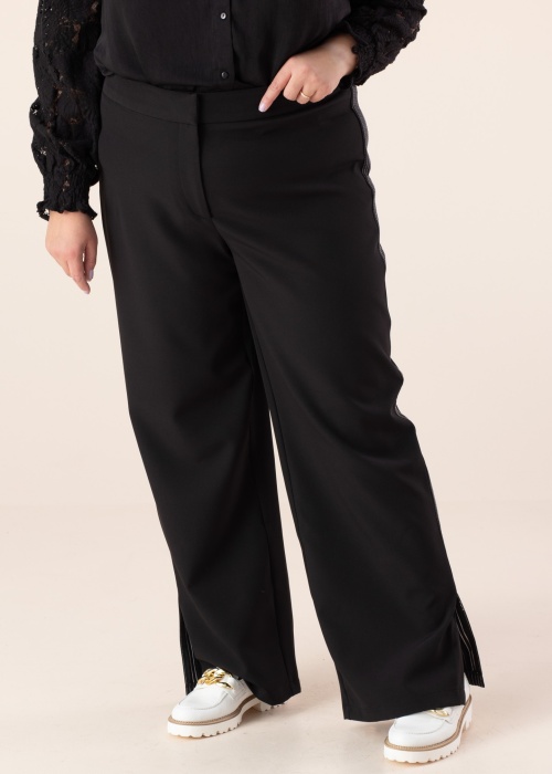 Своеобразный брюки Vila Evoked подходят для дней разного характера. Удобный и эластичная талия брюки- хорошо обвисающий и широкие штанины. Пояс застёгивается на крючок и замок, на концах штанин имеет разрез. Удобства добавляет эластичность материала. Рост модели - 167 см и носит размер 46.