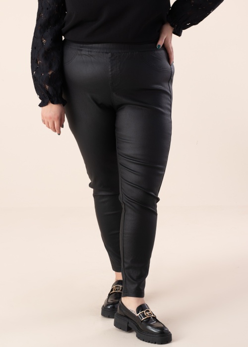 Модный брюки Simple Wish - молодёжный и модный выбор. Эти многосторонний с имитацией кожи брюки - высокая талия и обтягивающий покрой. На поясе имеет резинка и удобства добавляет эластичность материала. Рост модели - 167 см и носит размер 46.