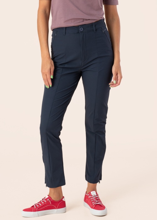 Эти стильные и удобные женские брюки от Diverse идеально подойдут для любого случая. Эластичная ткань обеспечивает комфорт и свободу движений. Брюки застегиваются на молнию и пуговицу, что гарантирует надежную посадку. Спереди есть карман на молнии, а сзади - декоративный карман. Молнии на концах штанин добавляют дополнительный стиль и функциональность. Модель имеет рост 177 см и носит размер 36.