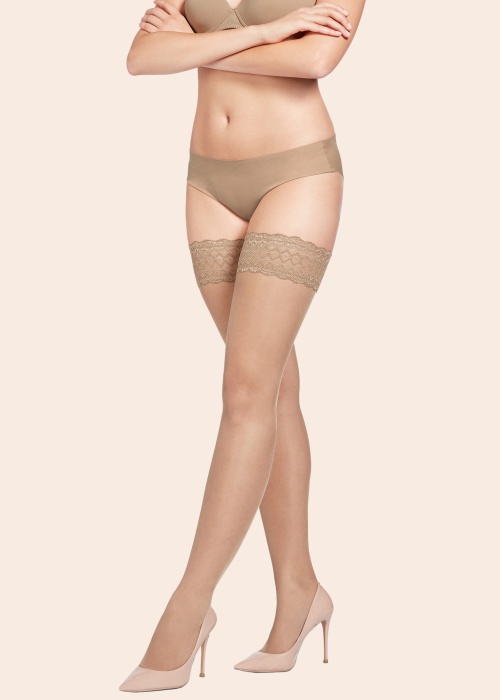 Эти женственные чулки Philippe Matignon Oro 15 den привлекают внимание к себе кружевом!Оно находится сверху и имеет внутри силикон, удерживающий их на месте. Тонкие чулки, благодаря Lycra, прочные и эластичные.