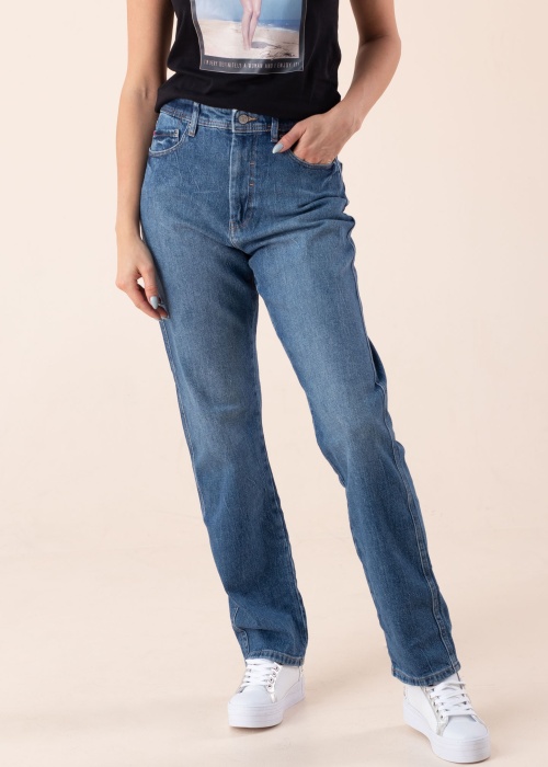 Джинсы от бренда Esprit с прямыми штанинами и женственным высоким поясом выполнены из неэластичной ткани. Пояс с застёжкой на пуговицу и молнию. По бокам изделия расположены открытые карманы. На задней части изделия два открытых кармана с острым углом. Рост модели 176 см. Демонстрируемое изделие размер 27. Состав материала: органический хлопок 99%, эластан 1%. Цвет: синий