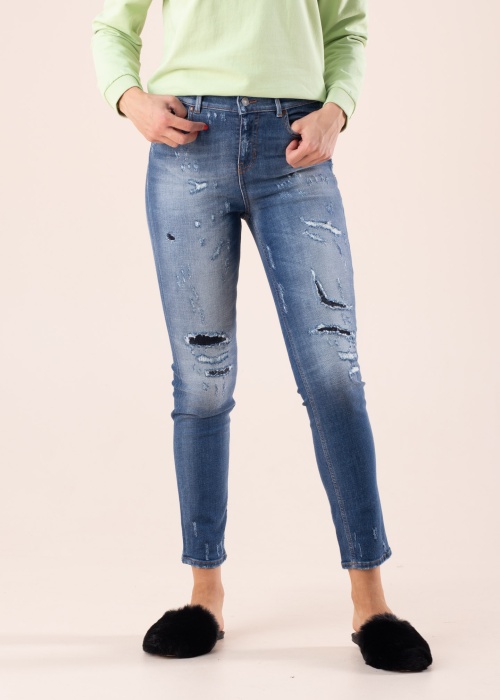 Узкие джинсы Guess 1981 с культовым высоким поясом и узкими штанинами. Изделие выполнено из эластичного денима. Прорехи на штанинах с изнанки частично покрыты тканью. Пояс с застёжкой на пуговицу и молнию. По бокам и на задней части изделия расположены открытые карманы. На задней части изделия нашивка бренда с анималистическим принтом и треугольный логотип бренда из текстиля на кармане. Рост модели 178 см. Демонстрируемое изделие размер 27/29. Состав материала: хлопок 99%, эластан 1%. Цвет: синий
