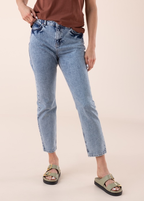 Джинсы Isabel от Noisy May представлены во вновь модном крое Mom Fit с высокой талией для дополнительного комфорта и зауженными штанинами. Брюки выполнены из неэластичного денима, имеют застежку на пуговицу и молнию, карманы имеют классическую планировку. Рост модели 176 см, изделие в размере 27/32.