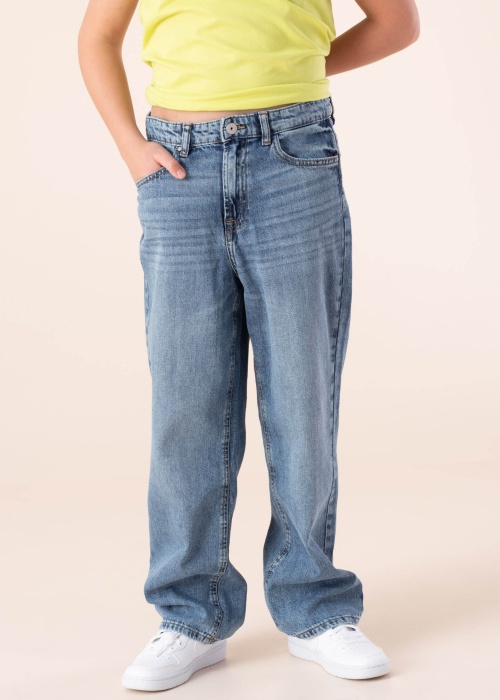 Модный джинсы Name It Kids сделают каждый школьный день по-стильному удобным. Широкие штанины c из неэластичного денима джинсы- Средняя посадка талии. Пояс застёгивается на пуговицу и замок, спереди и сзади имеет открытый карман. Практичности добавляет тоннельная резинка на внутреннем боку. Товар окрашен краской indigo. Он придаёт оригинальный цвет джинс, который естественным образом стирается при носке. Наслаждайтесь одобряющими взглядами Рост модели - 150 см и носит размер 152.