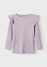 Девичий топ Babeth от Name It. Этот милый топ выполнен из ребристой ткани, что придаёт ему стильный и современный вид. Эластичный материал обеспечивает комфорт и свободу движений для вашей маленькой модницы. Привлекательный волан на плече добавляет особую изюминку и делает этот топ особенно очаровательным.