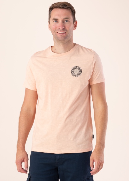 Мужская футболка от Blend сделана из качественного хлопка, что гарантирует комфорт и долговечность. Благодаря классическому крою и стильному дизайну она отлично подходит для повседневной носки. Футболка легко сочетается с разными элементами гардероба, придавая вашему образу современный вид. Модель на фотографии имеет рост 188 см и носит размер L.