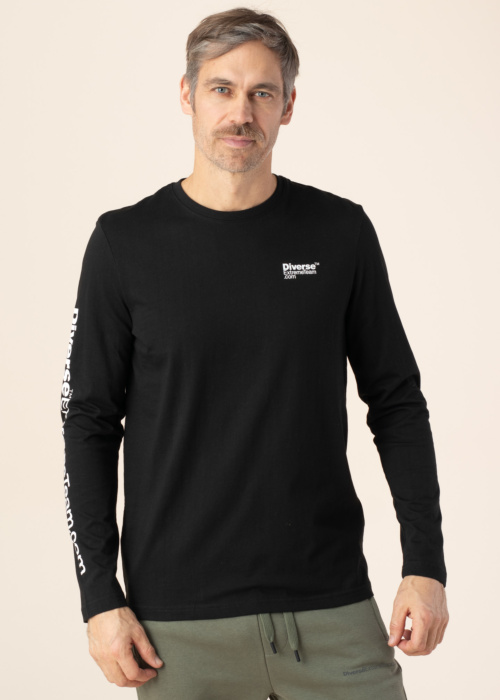 Мужская футболка Diverse Dext Logo LG 245 отличается стильным и мужественным дизайном. Она имеет длинные рукава и круглый вырез, что добавляет ей универсальности. Изготовленная из приятного материала, эта футболка сочетает в себе стиль, комфорт и практичность, что делает её отличным выбором для повседневной носки. На груди и правом рукаве размещены фирменные надписи, а воротник выполнен в рубчик. Рост модели составляет 195 см, и она носит размер L.