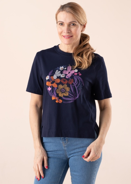 Привлекательная футболка Esprit подходит идеально для повседневного ношения. Простая и с круглой горловиной футболка- эластичная и укороченная длина тела. Перед украшает красивый принт и снизу- разрез. Рост модели - 178 см и носит размер S.
