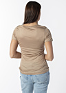 Женская футболка от Guess отличается стильным дизайном с V-образным вырезом и короткими рукавами. Она легкая и эластичная, что позволяет ей идеально облегать фигуру, подчеркивая ее достоинства и придавая уверенность. На груди вышит логотип бренда. В производстве использованы волокна Tencel®, которые получают из древесины, что делает ткань прочной, износостойкой и полностью биоразлагаемой. Модель на фото имеет рост 176 см и носит размер S.