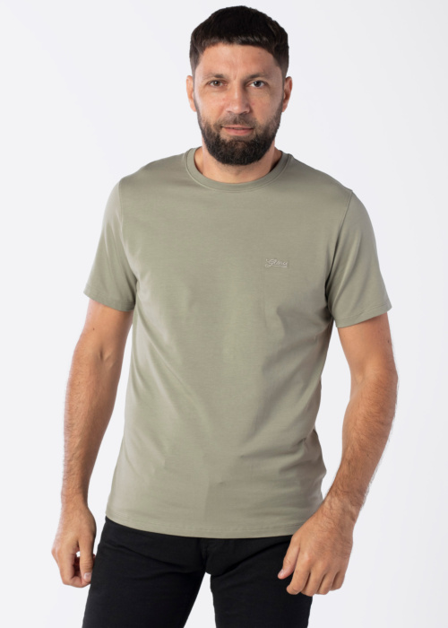 Футболка Guess для мужчин обладает следующими характеристиками: она повседневная, удобная, с круглым вырезом, сделана из мягкого хлопка, эластичная, с логотипом бренда на груди и резинкой на воротнике. Эта футболка идеально подходит для ежедневного ношения благодаря своему комфорту и стилю. Модель имеет рост 188 см и носит размер L.