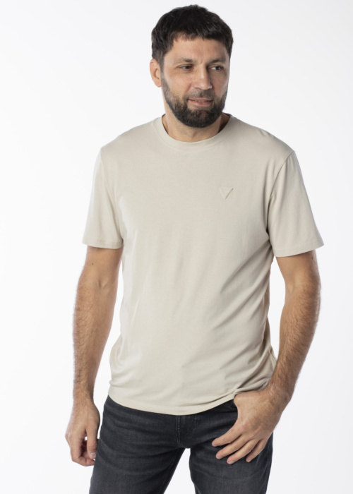 Мужская футболка Guess отличается стильным и удобным дизайном. Она имеет короткие рукава и круглый вырез, что делает её идеальной для повседневной носки. Логотип бренда Guess расположен на груди, добавляя уникальности и узнаваемости.