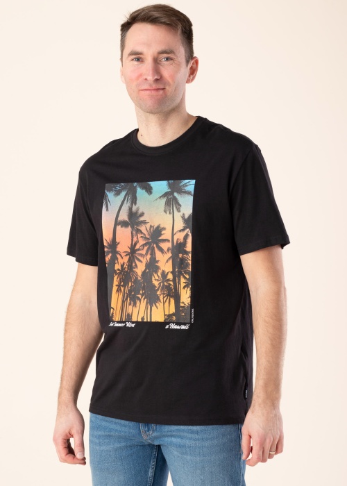 Футболка Only & Sons носит в себе буднее удобство.. Покрой Regular Fit , беспретензионная и с круглой горловиной футболка- мягкая и эластичная. Привлекательности добавляет эффектный принт на передней стороне. Удобных футболок никогда не бывает много! Рост модели - 188 см и носит размер L.