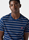 Стильная мужская футболка Levi's с полосатым узором идеально подходит для повседневной носки. Она имеет короткие рукава и круглый вырез, обеспечивая комфорт и свободу движений. Логотип бренда Levi's украшает грудь, добавляя изделию фирменный акцент.