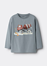 Футболка для мальчиков от бренда Name It - это стильный и веселый выбор для вашего ребенка. Она имеет длинные рукава и круглый вырез, что обеспечивает комфорт и свободу движений. На передней части футболки расположен яркий рисунок, который добавляет оригинальности и привлекательности.