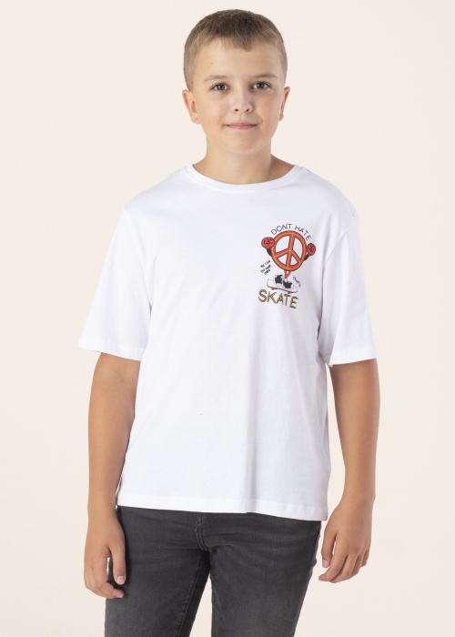Модная и стильная футболка Name It Kids для мальчиков, выполненная в свободном крое. Яркий принт на спине и груди придает изделию уникальный и выразительный вид. Мягкий и приятный к телу материал обеспечивает комфорт на протяжении всего дня. Вырез горловины оформлен эластичной резинкой для дополнительного удобства. Рост модели 150 см, размер 146-152.