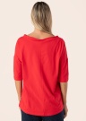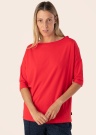 Эта яркая женская футболка от Diverse отличается удобством и свободным кроем. Она имеет эластичные рукава, доходящие до локтей, и приятную на ощупь ткань. Интересный дизайн на воротнике придает модели оригинальности. Рост модели 177 см, размер S.