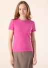 Одноцветная футболка JDY носит в себе буднее удобство.. Связанная соником мягкая футболка- с круглой горловиной и полуобтягивающий покрой. , также удобства добавляет эластичность материала. Рост модели - 174 см и носит размер S.