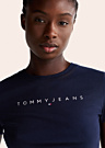 Футболка для женщин от Tommy Jeans, модель tjw slim linear tee ext, отличается стильным и современным дизайном. Она имеет облегающий крой с короткими рукавами и эластичной тканью, которая приятно ощущается на коже. На передней стороне изделия расположен логотип бренда, а воротник выполнен с резинкой для дополнительного комфорта.