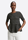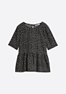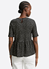 Футболка Tom Tailor для женщин отличается элегантным дизайном и круглым вырезом. Она имеет короткие рукава и выполнена из качественной ткани, что делает её подходящей как для повседневной носки, так и для более официальных мероприятий. Особенности включают застежку на пуговицы на спине и сборку на талии, а также узор в горошек.