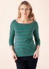 Полосатый узор футболка Tom Tailor подходит для повседневного ношения. Рукава-реглан футболка- полуобтягивающий дизайн, эластичная и хорошо сидящая. Стильный дизайн добавляет изящности. Рост модели - 178 см и носит размер S.