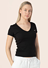 Футболка Tommy Jeans для женщин отличается стильным дизайном и комфортом. Она выполнена в однотонном цвете с V-образным вырезом, что придаёт ей элегантный вид. Эластичный материал и облегающий крой подчёркивают фигуру, обеспечивая удобство при носке. Модель имеет рост 176 см и носит размер S.