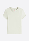 Женская футболка Tommy Jeans отличается удобным дизайном с короткими рукавами и круглым вырезом. Материал приятен на ощупь, а крой облегающий, что подчеркивает фигуру. Воротник оформлен резинкой для дополнительного комфорта. На груди расположен фирменный логотип в виде флага, который добавляет модели стильный акцент.