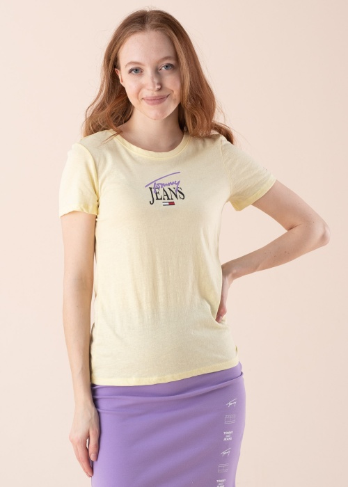 Простая футболка женственного облегающего кроя от бренда Tommy Jeans, красиво подчёркивающая фигуру, идеальный выбор для досуга, прекрасно сочетающийся и с джинсами и со спортивными штанами. На груди расположено название бренда, а под ним минималистический логотип. Эластичность ткани обеспечивает свободу движения. Рост модели 174 см. Демонстрируемое изделие размер S. Состав материала: хлопок 60%, полиэстер 40%. Цвет: жёлтый