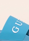 Модная шлёпанцы для бассейна Guess подходит подходят как в бассейн, так и на пляж. Поверхность скомбинирована синтетическая и акцента добавляет надпись бренда. Внутри без подкладки , также подошва из синтетического материала. Наслаждайтесь одобряющими взглядами
