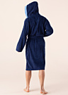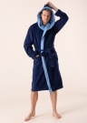 Халат Bugatti Stefano - это удобный, мягкий хлопок, уютный и практичный. Спереди два больших открытых кармана и классический ремень, застегивающийся посередине. Скромный акцент добавляют более темная отделка чехла и края капюшона. Рост модели 193 см, размер модели L. Общая длина модели 122 см. Материал: 100% хлопок. Цвет: темно-синий / военно-морской