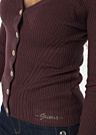 Кардиган Guess для женщин имеет V-образный вырез и стильный повседневный дизайн. Он изготовлен из мягкого и эластичного материала с ребристой вязкой и застегивается на пуговицы спереди. На левой стороне находится логотип бренда, который добавляет интересный акцент. Модель имеет рост 176 см и носит размер XS.