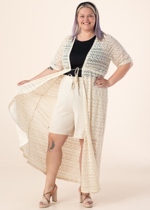 Эффектный кардиган Vero Moda Curve подходит для наслаждения летними днями. Кружевная игривый кардиган - удлиннённый покрой и рукава до логтя . В середине имеет тоннельный шнурок , также удобства добавляет эластичность материала. Наслаждайтесь одобряющими взглядами Рост модели - 167 см и носит размер 46-48.