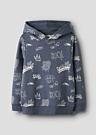 Свитшот для детей от бренда Name It, модель поисте пуза byson, отличается удобством и стильным дизайном. Он оснащён капюшоном и украшен ярким узором, который придаёт ему уникальный вид. Внутренняя часть изделия мягкая и приятная на ощупь, а манжеты и нижний край выполнены из эластичной ткани для дополнительного комфорта.