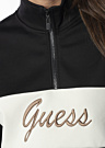 Женский свитшот Guess Fabia - это стильный и уникальный предмет гардероба. Внутренняя поверхность обработана, что делает его приятным на ощупь и мягким. Изделие выполнено из трикотажной ткани с логотипом бренда и застёжкой спереди. Модель имеет рост 176 см и носит размер S.