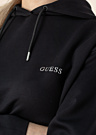 Женский свитшот Guess Gelsey - это стильный и удобный элемент повседневного гардероба. Он выполнен в черном цвете и оснащен капюшоном, который защитит от ветра и дождя. Мягкие объемные рукава и карман-кенгуру с шнурком добавляют комфорта и функциональности. Модель имеет рост 176 см и носит размер S.