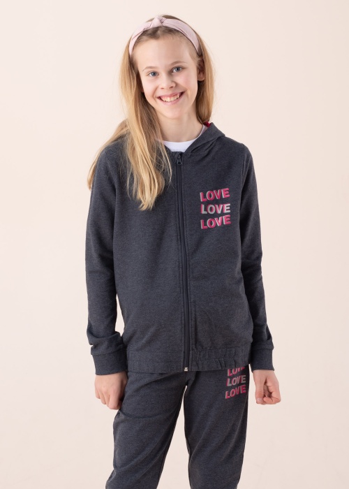 Мягкая и милая кофта для девочек Name It отлично подходит для отдыха дома или на природе. На капюшоне классная подкладка розового цвета, которая сочетается с принтом на груди. Практичный замок спереди, на рукавах соники, на нижнем, эластичном краю также соники для плотного прилегания. Скомбинирую кофту со штанами Рост модели - 146 см и носит размер 146-152.