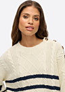 Свитер от SuperDry для женщин обладает следующими характеристиками: он красивый, с полосатым узором, удобный и всегда актуальный. Этот свитер прекрасно дополняет любой стиль одежды. На его поверхности есть рельефный узор, а манжеты и нижний край оформлены резинкой. Воротник также имеет резинку, а с левой стороны расположены пуговицы.