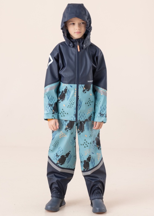 Привлекательная комплект от дождя Didriksons - незаменимый в дождливую погоду. Интересный узор комплект от дождя- водоотталкивающая и ветрозащитная. Galon® - абсолютно влагоотталкиваем благодаря покрытию из полиуретана с комбинацией с запаянными швами, поэтому отсутствуют отврестия, в которые может проникнуть вода снимаемый капюшон и снизу- утягивающая резинка. Внутри без подкладки. Рост модели - 125 см и носит размер 120.