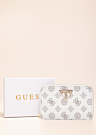 Женский кошелек Guess Laurel — это стильный и компактный аксессуар, идеально подходящий для повседневного использования. Он закрывается сверху и имеет несколько отделений для карт, что делает его очень удобным и практичным. Внутри также есть карман на молнии, который позволяет надежно хранить мелкие вещи.