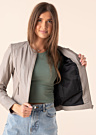 Эффектная и модная куртка из высококачественной кожи "Paula" от "Saki" идеально подходит для повседневного ношения ранней весной, а также для прохладных летних вечеров. Куртка имеет круглый вырез и застёгивается на молнию. По бокам располагаются карманы на молнии. Модель дополнительно украшают дизайнерские швы на плечах. Внутренняя поверхность покрыта шелковистой на ощупь подкладкой, приятно удобной для кожи. Рост модели 178 см, изделие в размере 36. Длина от спинки до низа в данном размере 50 см.
