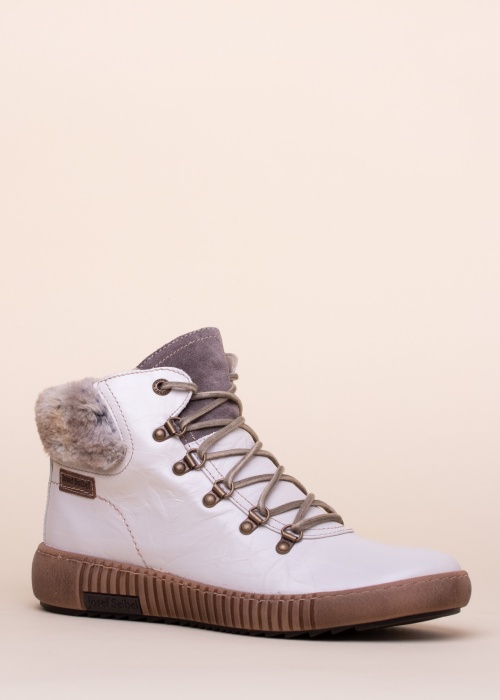 Ботильоны Josef Seibel Maren 17 с ремешками - выдающиеся и особенные! Туфли на низком каблуке изготовлены из мягкой кожи и украшены пушистой шерстью вокруг лодыжки и замшевым язычком. Застежка - классическая кулиска сверху и практичная молния внутри. Внутренняя часть имеет гладкую текстильную подкладку и мягкую стельку, которую при необходимости можно снять или заменить. Готовую стельку рекомендуем покрыть пчелиным воском, чтобы влага не попала внутрь обуви. Подошва толщиной 4 см с плотным резиновым рисунком обеспечивает хорошее сцепление даже на мокрой поверхности. Вес 39-го размера 402 г. Цвет: белый.