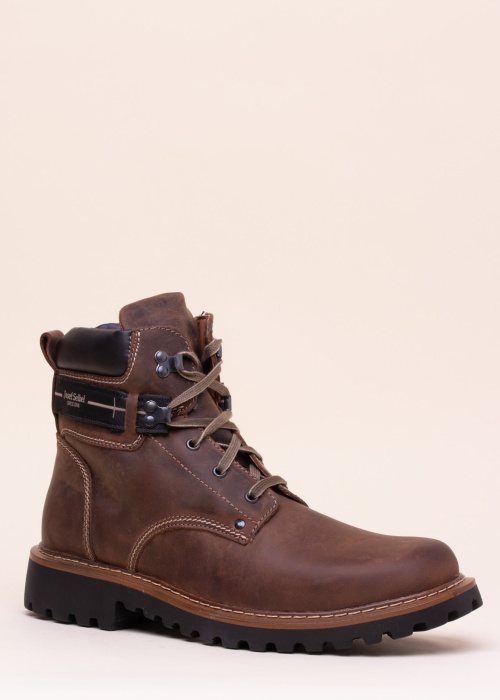 Josef Seibel известен своей качественной и теплой обувью, поэтому она подходит мужчинам, ценящим комфорт и качество. Ботинки изготовлены из кожи нубук, что обеспечивает лучшую устойчивость к влаге и непогоде. Сверху классическая шнуровка которая крепится выше за крючки. Верх ботинка оборачивается чёрным текстильным ремешком, по бокам - вышитой фирменной надписью. На заднике минималистичная тиснёная надпись. Внутренняя подкладка изготовлена из сверхмягкой натуральной шерсти. Подошва изготовлена из синтетической резины с глубоким протектором, который надежно удерживает пользователя на дороге. Вес обуви 46-го размера - 641 г. Цвет: тёмно-коричневый. Также подходит для более широкой стопы.