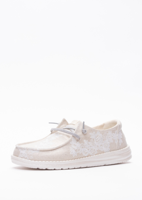 Hey Dude женские повседневные туфли Wendy — это отличный выбор для тех, кто ценит комфорт и стиль. Эти туфли очень легкие и мягкие, что делает их идеальными для ежедневного использования. Они имеют резиновые шнурки сверху и декоративную строчку на носке, что придает им уникальный вид. Верх обуви украшен вышивкой, добавляющей изысканности и блеска. Эти туфли прекрасно подходят для повседневной носки, обеспечивая комфорт и привлекательный внешний вид.