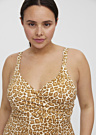 Слитный купальник Vero Moda Curve Celine идеален и для пляжа, и для бассейна. Модель с красивым леопардовым принтом. Область бюста с мягким уплотнителем. Удобные регулируемые бретели. Материал изделия комфортно облегает тело. Лиф с запахом добавляет элегантность и самобытность купальнику. Мягкая подкладка из полиэстера. Рост модели 167 см. Демонстрируемое изделие размер 46. Состав материала Основная часть: полиамид 87%, эластан 13%. Подкладка: полиэстер 100%. Цвет: коричневый/узорчатый