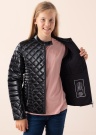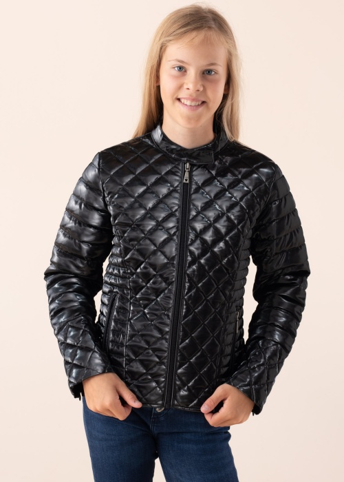 Весенне-осенняя куртка Guess Mini Me привлекает внимание своим красивым дизайном и гламурным блеском. Стёганая поверхность имеет водоотталкивающие и ветрозащитные свойства. Полы застёгиваются на молнию, переходящую в невысокий стоячий воротник, фиксирующийся липучкой. Боковые карманы с застёжкой на молнию, на концах рукавов также имеются молнии. С матовой отделкой внутренняя поверхность изготовлена из смеси полиэстера и эластана, лёгкий утеплитель - из волокон полиэстера. Рост модели 146 см, носит размер 147. Длина изделия от ворота до нижнего края 51,5 см. Материал: полиэстер 100%. Цвет: чёрный.