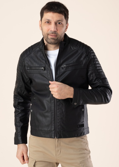 Модная куртка Diverse сделает каждый день особенным. Стильная горловина-стойка куртка - хорошо сидящая тёплая и с приятным прикосновением. Поверхность изготовлена искусственная кожа , также полочки застёгиваются на замок Сбоку имеет карман на кнопке , на груди карман с молнией и на концах рукавов кнопка. Внутри открытые карманы. Рост модели - 188 см и носит размер L.