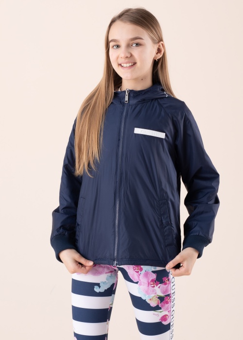 Модная, двухсторонняя весенне-осенняя куртка от Guess - надёжный выбор для каждой стильной девочки, обеспечивающий комфорт и при активном роде деятельности. Полочки с застёжкой на молнию. На передней части изделия расположены карманы на удобной кнопке. Эластичные манжеты на рукавах обеспечивает красивую форму и посадку. Уютный капюшон обеспечит защиту от холодного ветра. Шелковистая на ощупь одноцветная поверхность, мягкая и уютная разноцветная поверхность. Рост модели 147 см. Демонстрируемое изделие размер 136. Длина изделия по спинке, для данного размера, 52,5 см. Состав материала. Одноцветная поверхность: полиэстер 100%. Разноцветная поверхность: полиэстер 92%, эластан 8%. Цвет: тёмно-синий/цветной