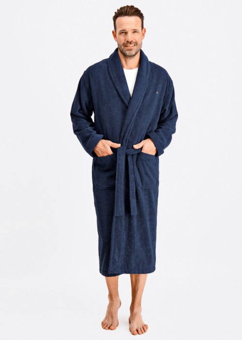Мужской халат Bison — это удобный, мягкий и уютный предмет одежды, идеально подходящий для домашнего отдыха. Он оснащен поясом, который завязывается на талии, и открытыми карманами спереди, что добавляет практичности и комфорта.